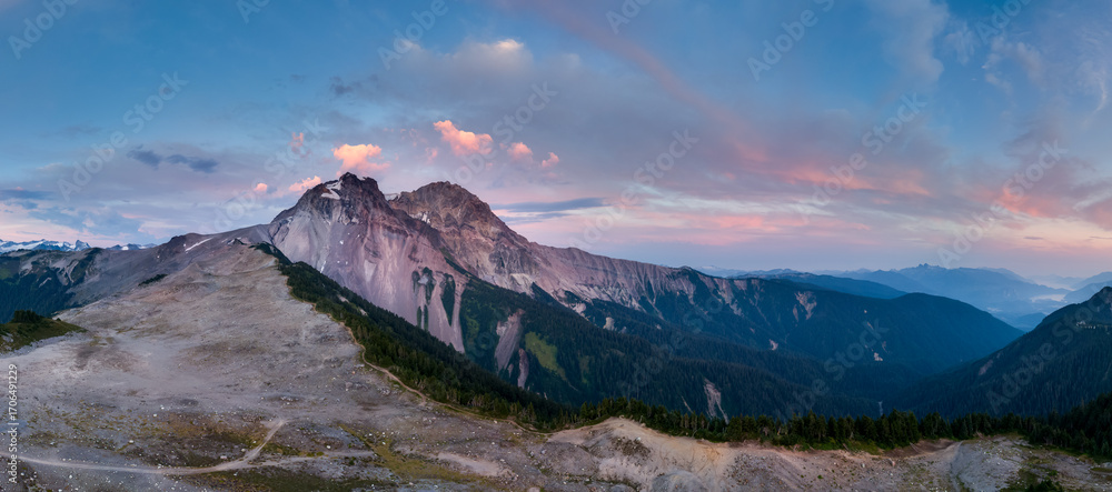 Magnificent Mountain Landscape at Sunset in BC, Canada With Vibrant Sky