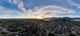 Aerial Panorama at Sunset Over Burnaby, Greater Vancouver Skyline, BC, Canada