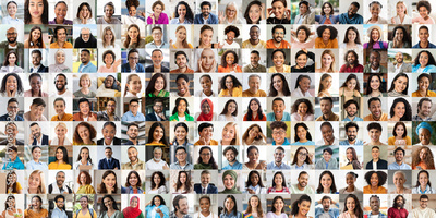 This portrait collage features a vibrant mix of happy individuals from various backgrounds. Each face reflects joy and diversity, celebrating the beauty of multiethnic connections and lifestyles.