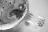 Coffee cup from above, Espresso foam texture, creamy coffee, rich, freshly brewed cup of hot latte. Top view of cappuccino milk foam closeup. Creamy coffee macro shot, on a grey table, top view