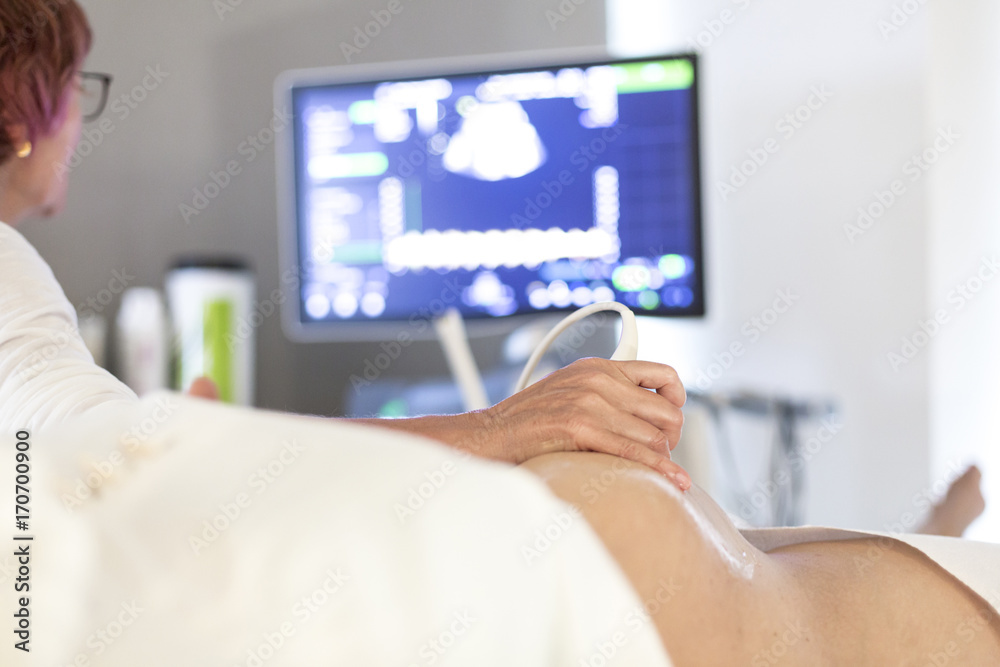 Schwangere Frau bei Ultraschalluntersuchung beim Gynäkologen