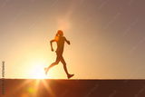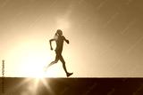fit active healthy woman running in a field silhouette, sport fitness concept