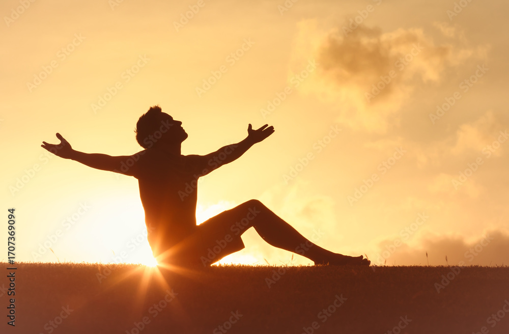 Sunset Silhouette Of A Person With Open Arms Expressing Joy And Freedom