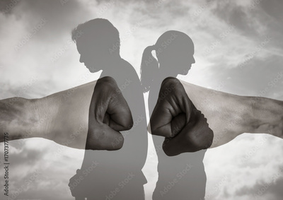 Silhouettes of a man woman in Conflict Argument Having Disagreement Bad Relationship