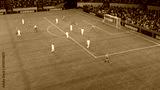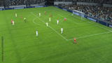 Soccer Football Championship Gameplay: Red and White Teams Players Play a Tournament Game. Sport Channel Live Television Broadcast. Photo Template for Screen Replacement