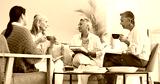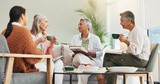 Book club, friends and senior women in home, retirement and review of novel, discussion and bonding. Talking, reader and elderly people with hobby in lounge, snacks and criticism of story in house