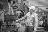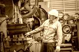 Machinist operating heavy machinery in industrial workshop close-up action focused environment skilled labor