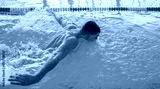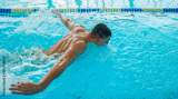 Professional Swimmer Performing Butterfly Stroke – Speed, Power and Determination. Swimming Competition – Athlete in Butterfly Style Training in Blue Water Pool