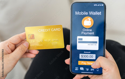 E-wallet payment, credit card transaction and digital finance concept, woman holding smartphone and credit card making secure online shopping purchase, fintech, e-commerce and digital wallet payment