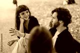 Three adults enjoying a friendly and engaging conversation outdoors, surrounded by a green environment, conveying friendship, connection, and shared experiences.