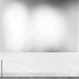 Empty white table top, counter, desk background over blur abstract bokeh light background, White marble stone table, shelf and blurred white backgroundt for food, product display mockup, template