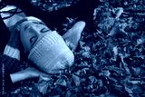High angle view of woman lying on dry leaves