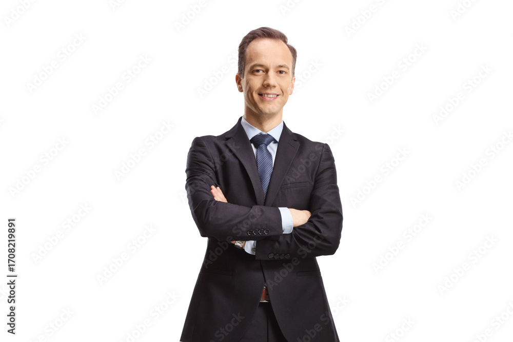 Businessman standing with folded arms and smiling