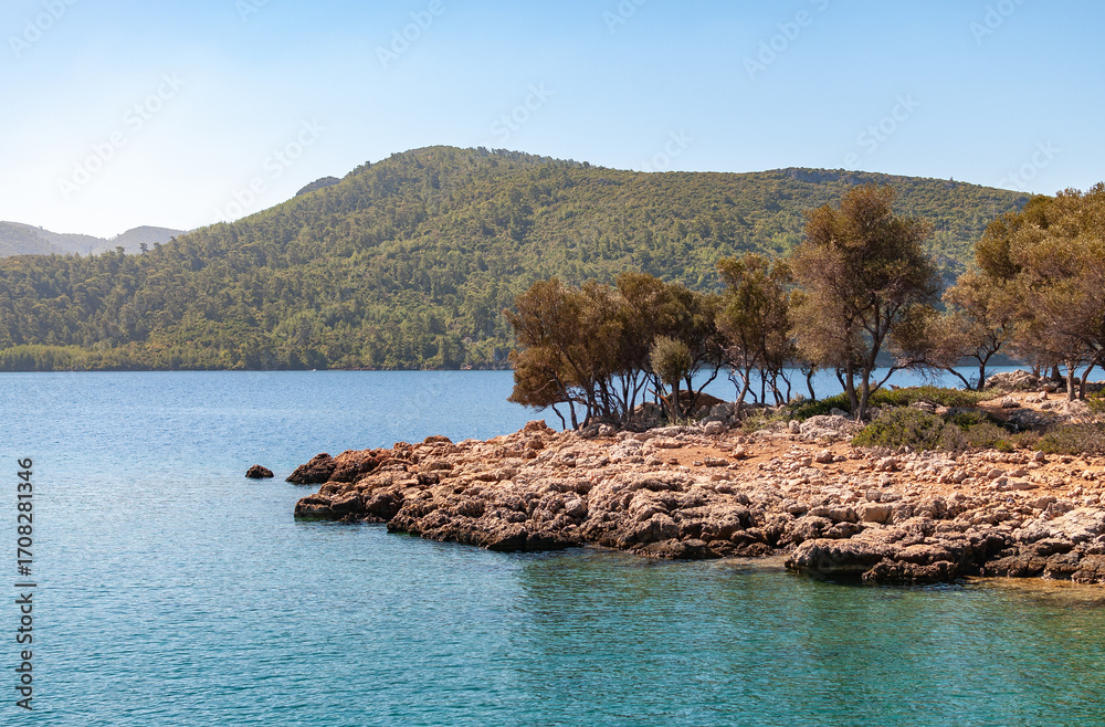 Aegean Islands. The Aegean Sea coast in the Gulf of Gokova in Mugla Province, Turkey.