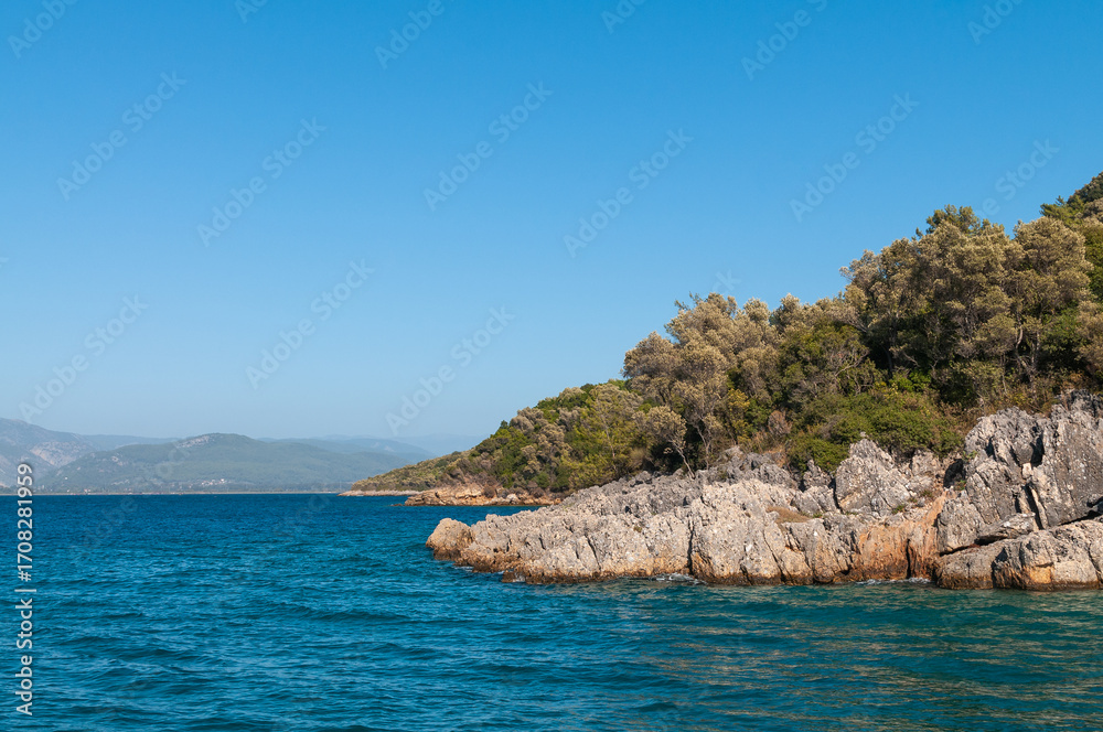 Aegean Islands. The Aegean Sea coast in the Gulf of Gokova in Mugla Province, Turkey.