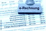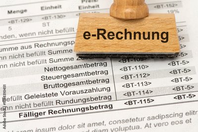 Auf dem Ausdruck einer elektronischen Rechnung steht ein Holzstempel mit der Aufschrift e-Rechnung