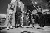 A team of diverse and energetic colleagues expressing joy and achievement outdoors.
