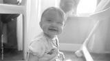 baby newborn playing at the window at home. happy family child dream concept. baby smiling indoors. small child baby playing lifestyle