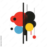 Abstract geometric composition with circles and lines, isolated on transparent background