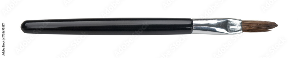 Paint brush with black handle and brown bristles on transparent background