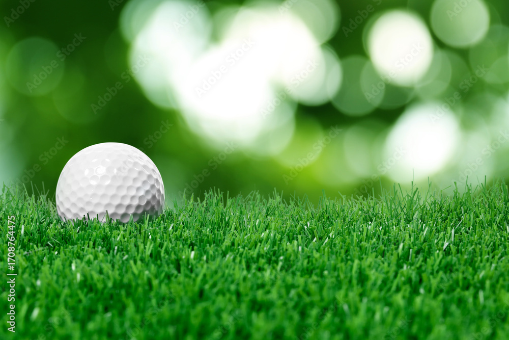Golf ball on green grass against blurred background