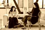 Sad stressed young woman patient talking with female psychologist, mental counselor