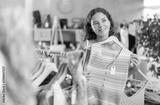 Positive young girl looking for some summer wears during sell-out in retail outlet