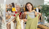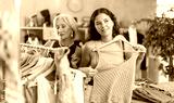 Elderly and young female shoppers buying clothes for summer in clothing store