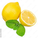 Bright fresh lemon with mint leaves on a white background, top view with copy space for advertising, design, and healthy food concepts