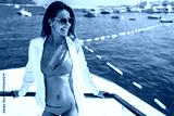 Tourist woman on a yacht exploring coastal destinations, enjoying the beauty of seaside tourism