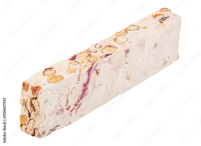 Traditional Italian Christmas dessert torrone with nuts and honey isolated on white background.