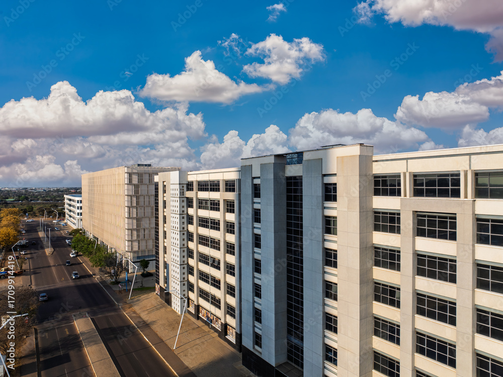 aerial view of Gaborone city modern buildings commercial CBD in central area , daytime
