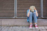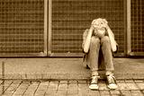 Lonely teenager sitting on the floor outdoors