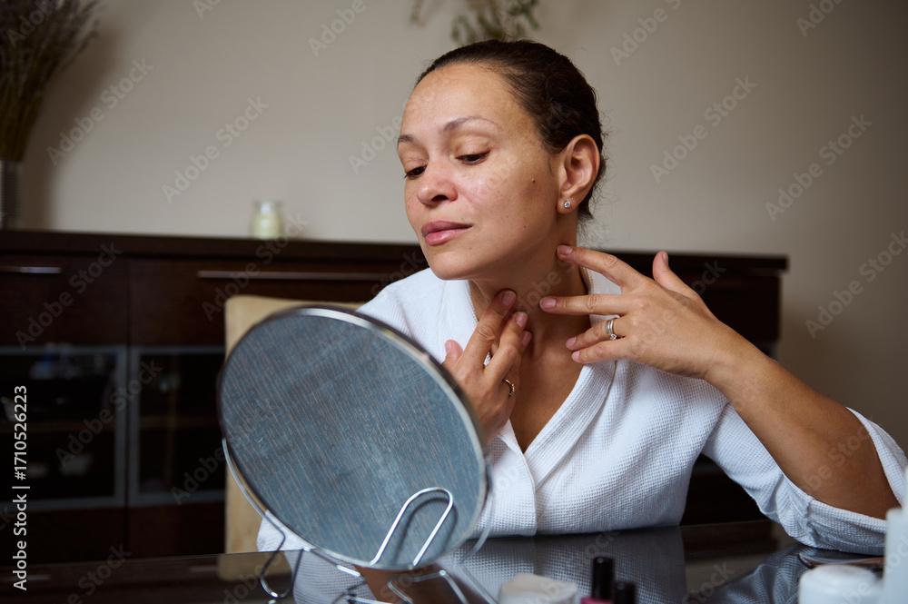 Woman Skincare Routine with Mirror in a Home Setting