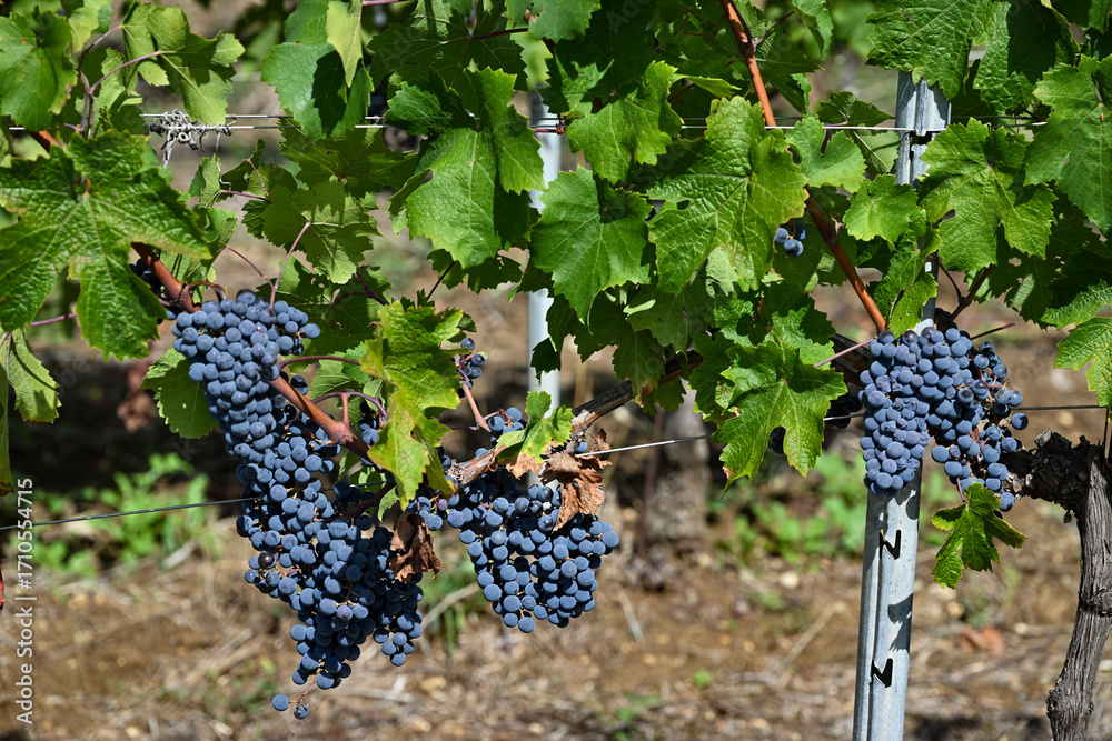 Bolgheri Cabernet Sauvignon grapes and vineyards in Tuscany for Supertuscan Sassicaia and Ornellaia wines
