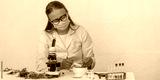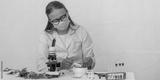 Laboratory research of cannabis leaves with microscope