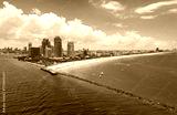 Aerial view of Miami Beach with turquoise waters. Drone shot of Miami skyline. Top view of South Miami Beach. Miami cityscape with luxury skyscrapers and ocean. View of Miamis famous skyscrapers.
