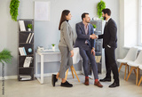 Handshake of client and lawyer, agent advisor in office. Business people shake hands to promise success of contract and deal, purchase, start cooperation. Partnership, collaboration, agreement concept