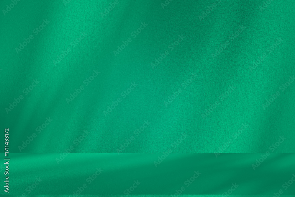 Wall interior background, studio and backdrops show products. with leaf shadow leaf from window color green and white. background for text insertion and presentation of product