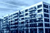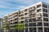 Modern gray multifamily apartment building seen in Berlin, Germany