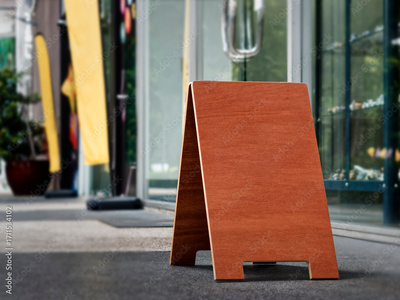 Wooden Board Sign stand Signage Storefront Mock up sign Cafe restaurant shop logo