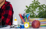 Schoolboy studying online on laptop at home, sitting at table. Distance learning.