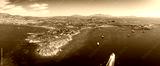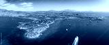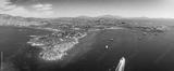 Panoramic aerial view of the coast of Athens, Greece, with Voula and Vouliagemni district, popular beaches and yacht marinas