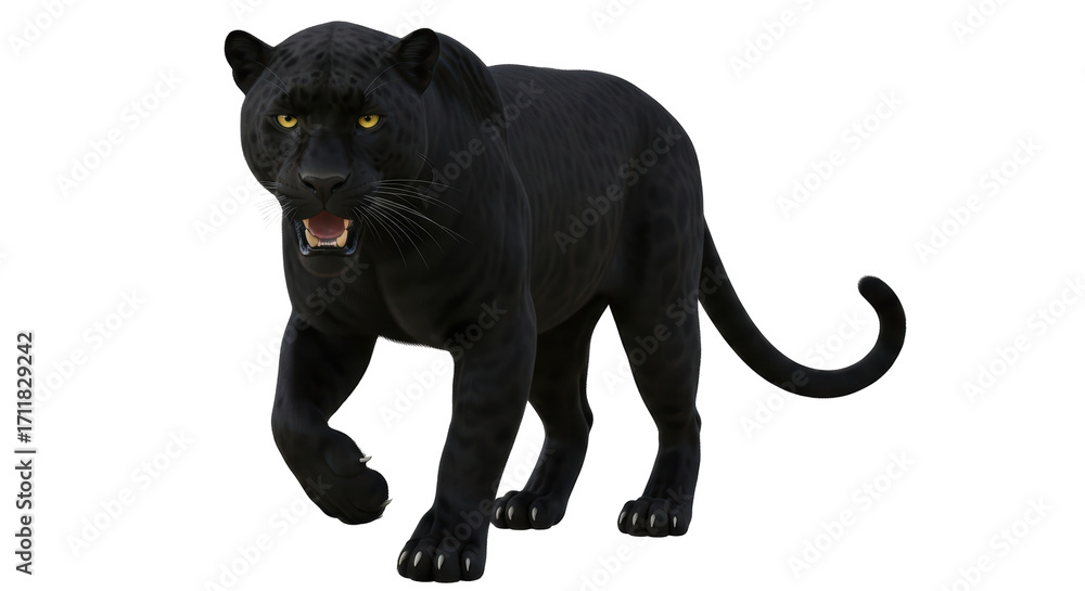Isolated black panther prowling in the jungle, ready to strike a predator, fierce wildlife