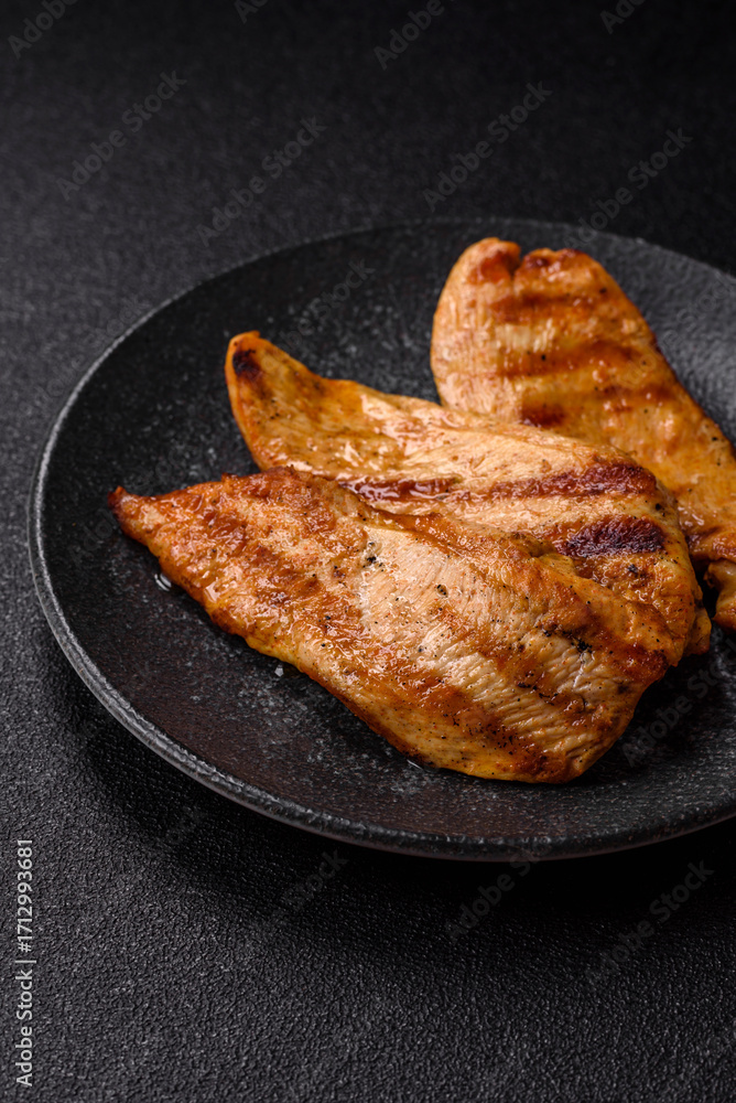 Grilled chicken or turkey breast, a healthy lunch option. Grilled chicken steak