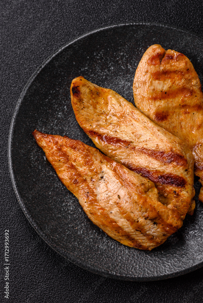 Grilled chicken or turkey breast, a healthy lunch option. Grilled chicken steak