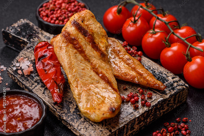 Grilled chicken or turkey breast, a healthy lunch option. Grilled chicken steak