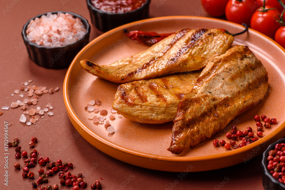 Grilled chicken or turkey breast, a healthy lunch option. Grilled chicken steak
