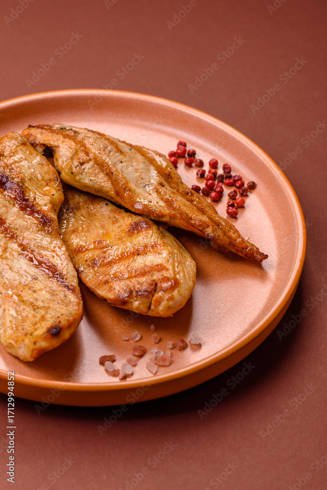 Grilled chicken or turkey breast, a healthy lunch option. Grilled chicken steak