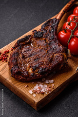 Grilled bone-in meat, beef tomahawk steak, juicy barbecued meat. Tomahawk steak